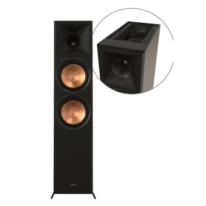Los altavoces de tipo columna Klipsch RP-8060FA II Dolby Atmos cuentan con un altavoz Dolby Atmos® de alto rendimiento de 6,5″ (165 mm) y 2 vías integrado en la parte superior para ofrecer una experiencia impresionante que lo abarca todo. Es una configuración perfectamente combinada que virtualmente desaparece gracias a los terminales de altavoces integrados.