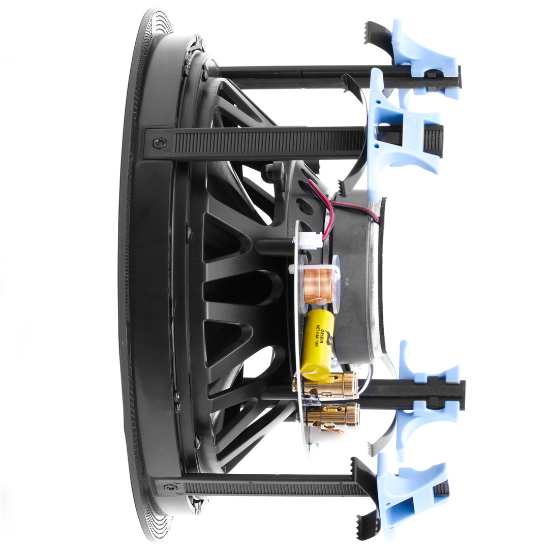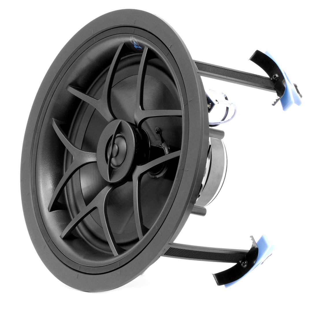 Serie Director de 8″: altavoz de techo con woofer de caucho sintético de 8″, tweeter de cúpula de seda pivotante e instalación sin herramientas.
