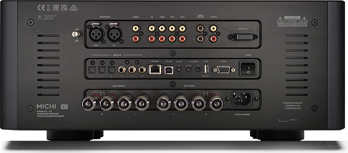 El excepcionalmente musical y preciso amplificador integrado estereofónico Michi X5 Serie 2 está equipado con un convertidor de digital a analógico de alta precisión ESS SABRE de 8 canales y entrega 600 robustos vatios en Clase AB por canal sobre 4 ohmios, a la vez que incorpora entradas para fuentes analógicas RCA y XLR, digitales, inalámbricas vía aptX™ HD Bluetooth y PC-USB, así como una etapa de fono para cápsulas de imán móvil (MM) y bobina móvil (MC).
